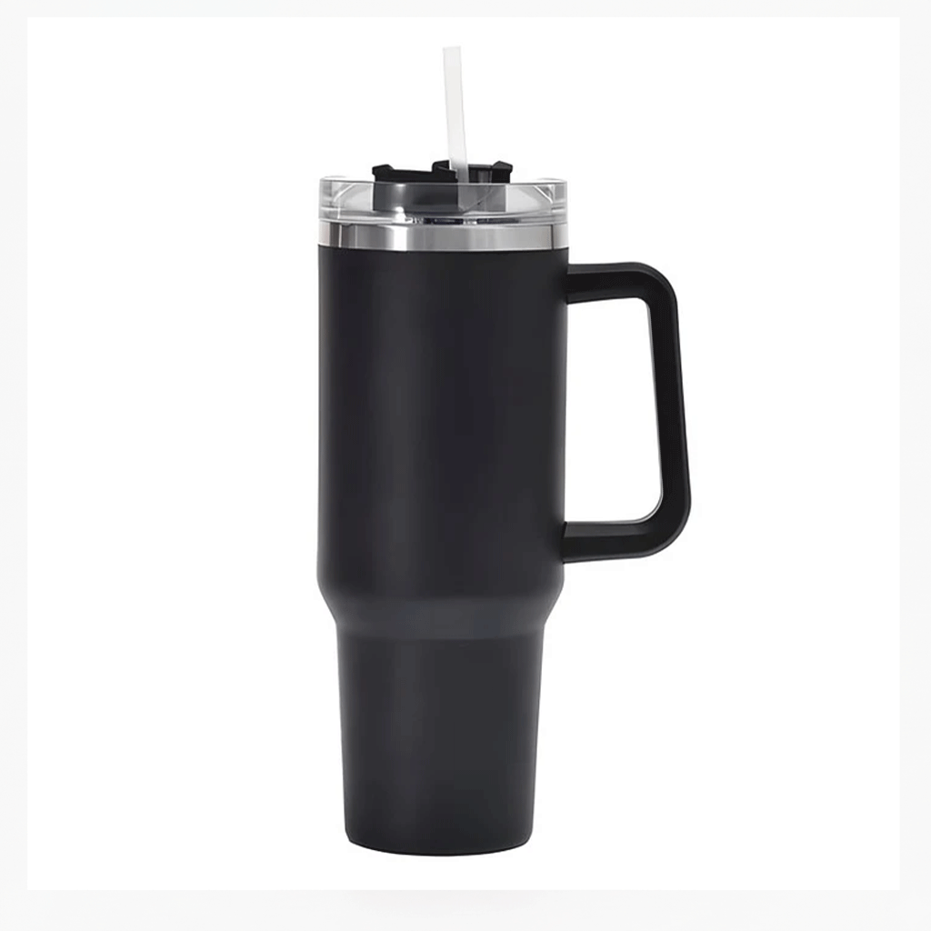 Mug térmico de 1,2 litros de capacidad, está fabricado en acero inoxidable.