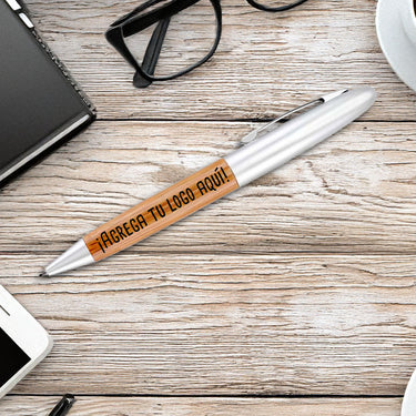 Deluxe Bolígrafo Ejecutivo de Madera de Bamboo con cuerpo superior y clip metálicos satinados