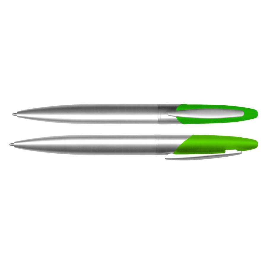Bolígrafo Metálico giratorio, con superficie superior engomada color.