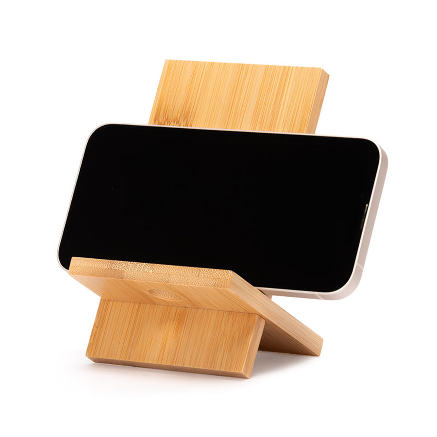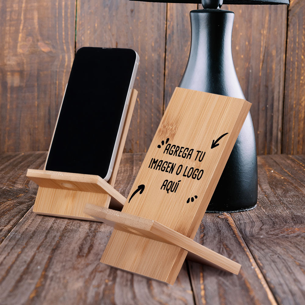 Madera de Bamboo, con 2 piezas armables, soportan el celular en un ángulo de 60°